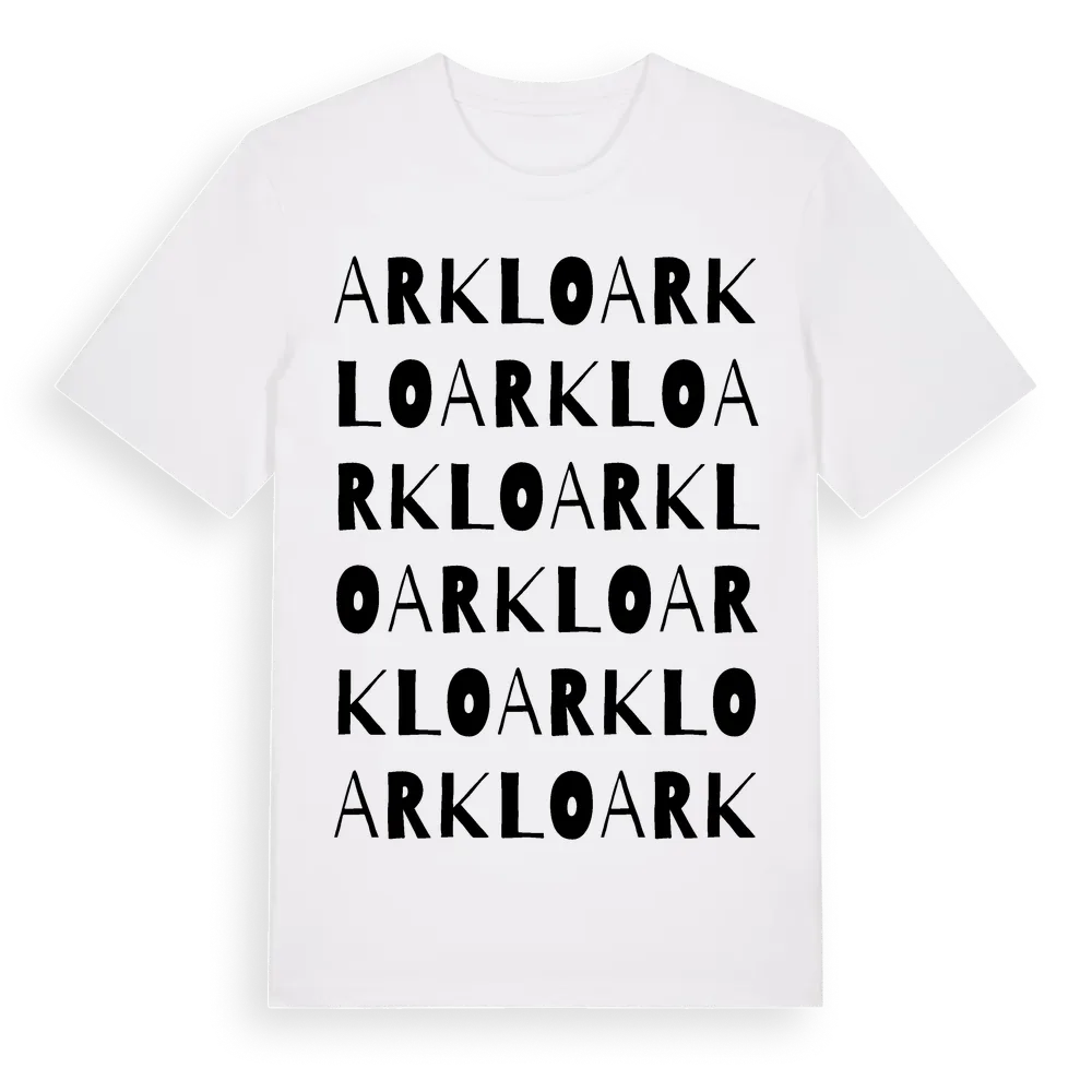 Arklo ordlek t-shirt är inspirerad av byn Arklo i Gävleborgs län, Sverige. Tröjan är designad för dig som har en speciell koppling till platsen – oavsett om du bor här, har rötterna här eller bara älskar Arklo.