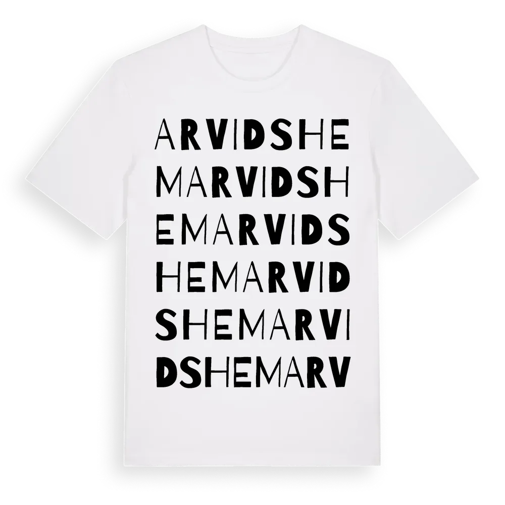 Arvidshem ordlek t-shirt är inspirerad av Arvidshem i Gävleborgs län, Sverige. Tröjan är designad för dig som har en speciell koppling till platsen – oavsett om du bor här, har rötterna här eller bara älskar Arvidshem.