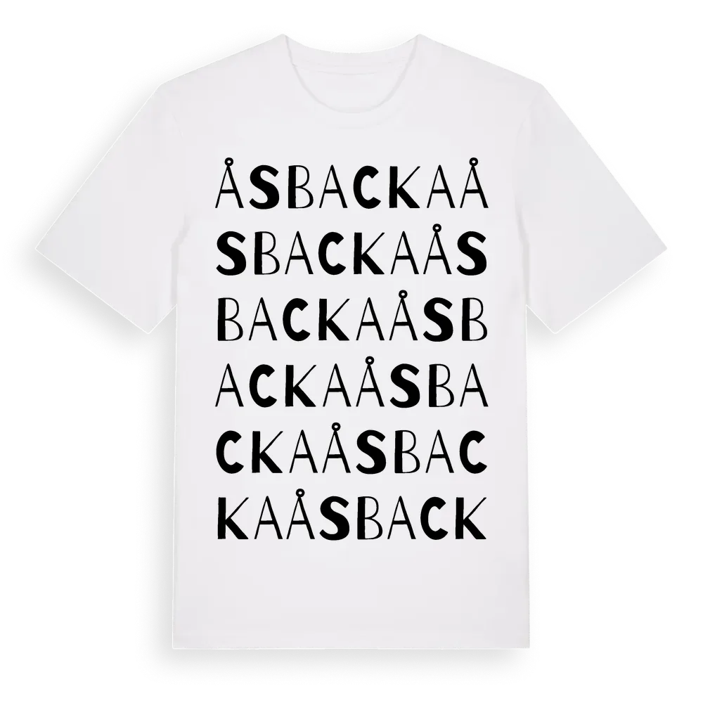 Åsbacka ordlek t-shirt är inspirerad av Åsbacka i Gävleborgs län, Sverige. Tröjan är designad för dig som har en speciell koppling till platsen – oavsett om du bor här, har rötterna här eller bara älskar Åsbacka.