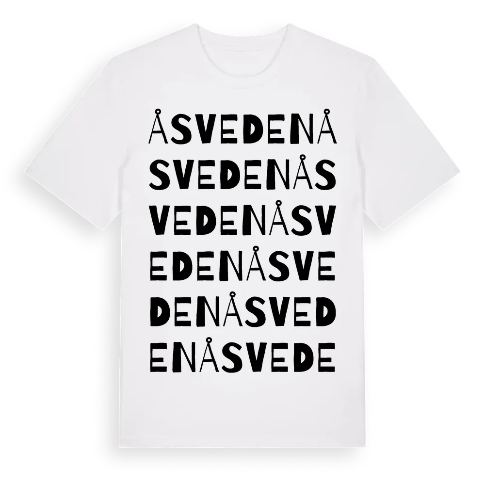 Åsveden ordlek t-shirt är inspirerad av byn Åsveden i Gävleborgs län, Sverige. Tröjan är designad för dig som har en speciell koppling till platsen – oavsett om du bor här, har rötterna här eller bara älskar Åsveden.