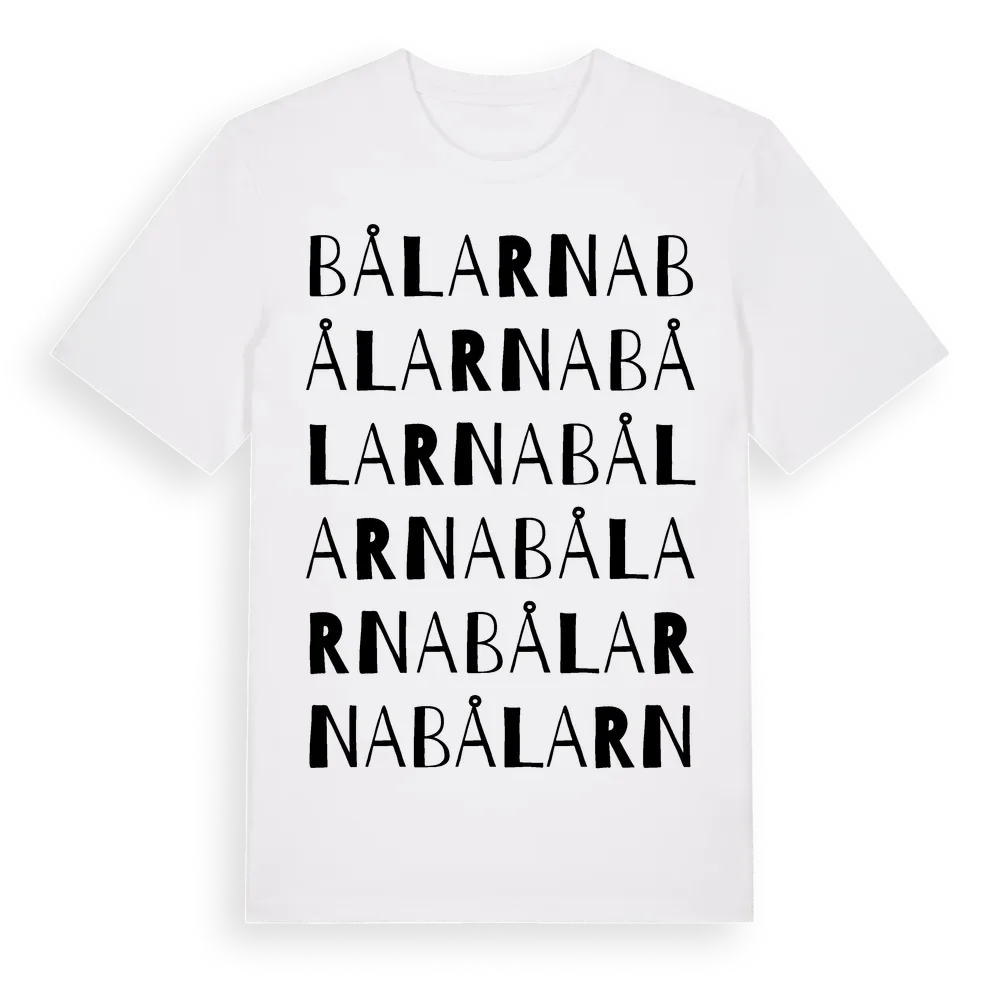 Bålarna ordlek t-shirt är inspirerad av Bålarna i Gävleborgs län, Sverige. Tröjan är designad för dig som har en speciell koppling till platsen – oavsett om du bor här, har rötterna här eller bara älskar Bålarna.