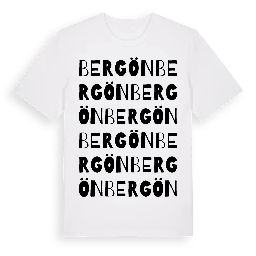 Bergön ordlek t-shirt är inspirerad av byn Bergön i Gävleborgs län, Sverige. Tröjan är designad för dig som har en speciell koppling till platsen – oavsett om du bor här, har rötterna här eller bara älskar Bergön.