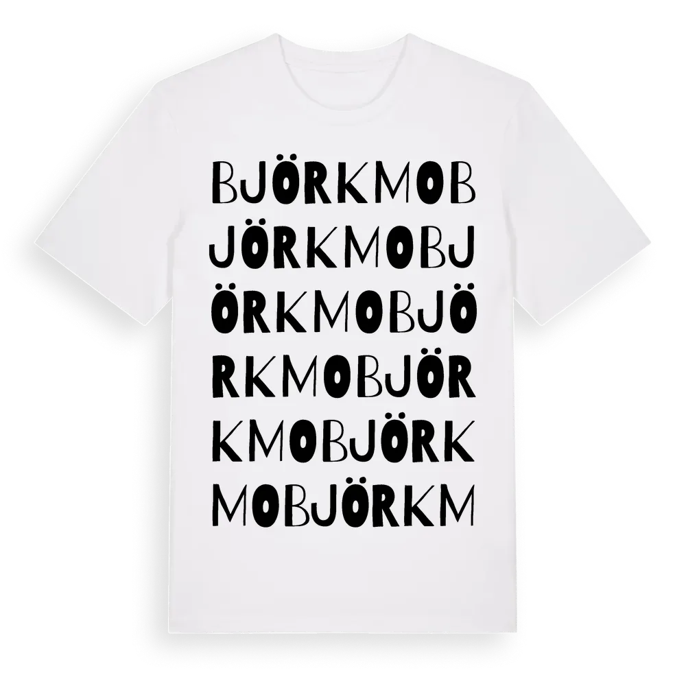 Björkmo ordlek t-shirt är inspirerad av byn Björkmo i Gävleborgs län, Sverige. Tröjan är designad för dig som har en speciell koppling till platsen – oavsett om du bor här, har rötterna här eller bara älskar Björkmo.