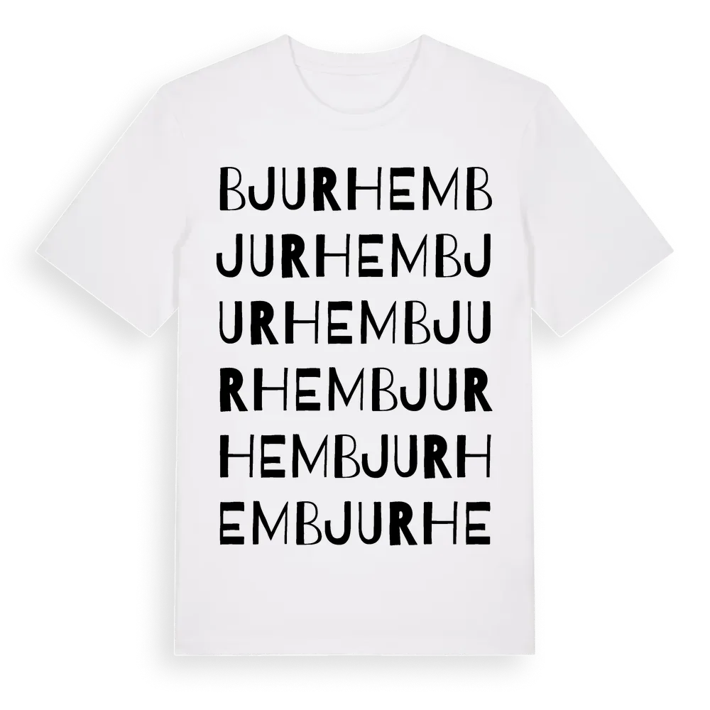 Bjurhem ordlek t-shirt är inspirerad av Bjurhem i Gävleborgs län, Sverige. Tröjan är designad för dig som har en speciell koppling till platsen – oavsett om du bor här, har rötterna här eller bara älskar Bjurhem.