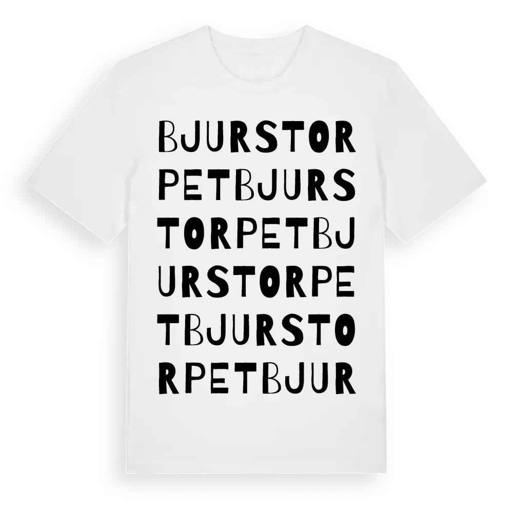 Bjurstorpet ordlek t-shirt är inspirerad av Bjurstorpet i Gävleborgs län, Sverige. Tröjan är designad för dig som har en speciell koppling till platsen – oavsett om du bor här, har rötterna här eller bara älskar Bjurstorpet.