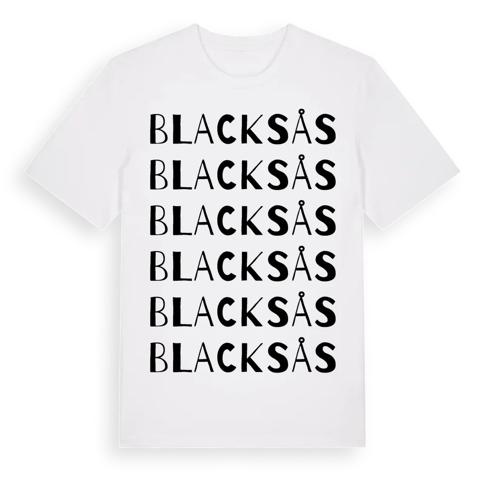 Blacksås ordlek t-shirt är inspirerad av byn Blacksås i Gävleborgs län, Sverige. Tröjan är designad för dig som har en speciell koppling till platsen – oavsett om du bor här, har rötterna här eller bara älskar Blacksås.