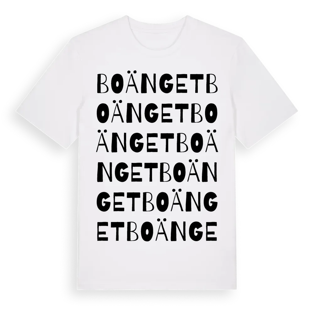 Boänget ordlek t-shirt är inspirerad av Boänget i Gävleborgs län, Sverige. Tröjan är designad för dig som har en speciell koppling till platsen – oavsett om du bor här, har rötterna här eller bara älskar Boänget.