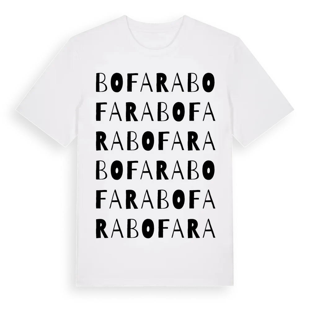 Bofara ordlek t-shirt är inspirerad av byn Bofara i Gävleborgs län, Sverige. Tröjan är designad för dig som har en speciell koppling till platsen – oavsett om du bor här, har rötterna här eller bara älskar Bofara.
