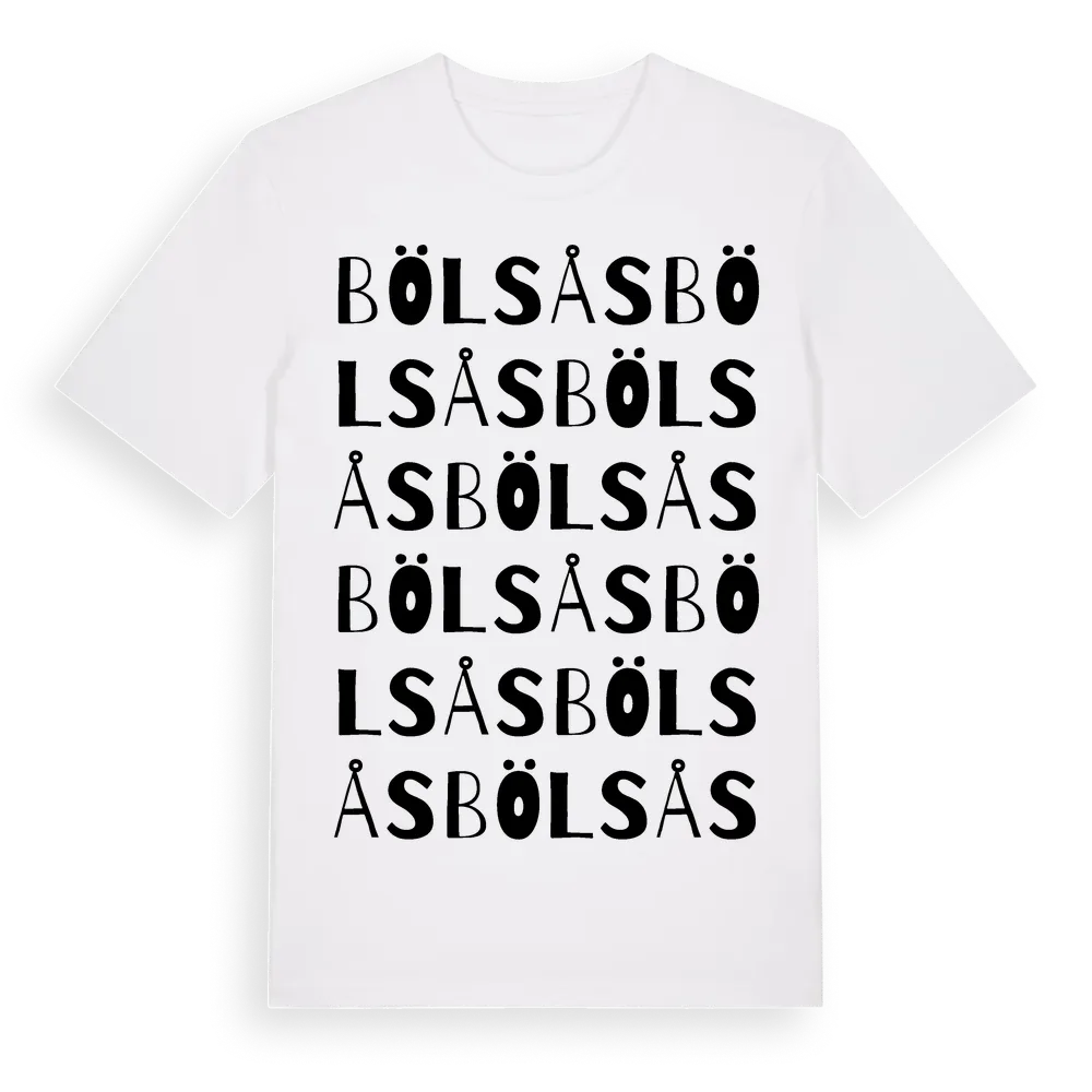 Bölsås ordlek t-shirt är inspirerad av byn Bölsås i Gävleborgs län, Sverige. Tröjan är designad för dig som har en speciell koppling till platsen – oavsett om du bor här, har rötterna här eller bara älskar Bölsås.