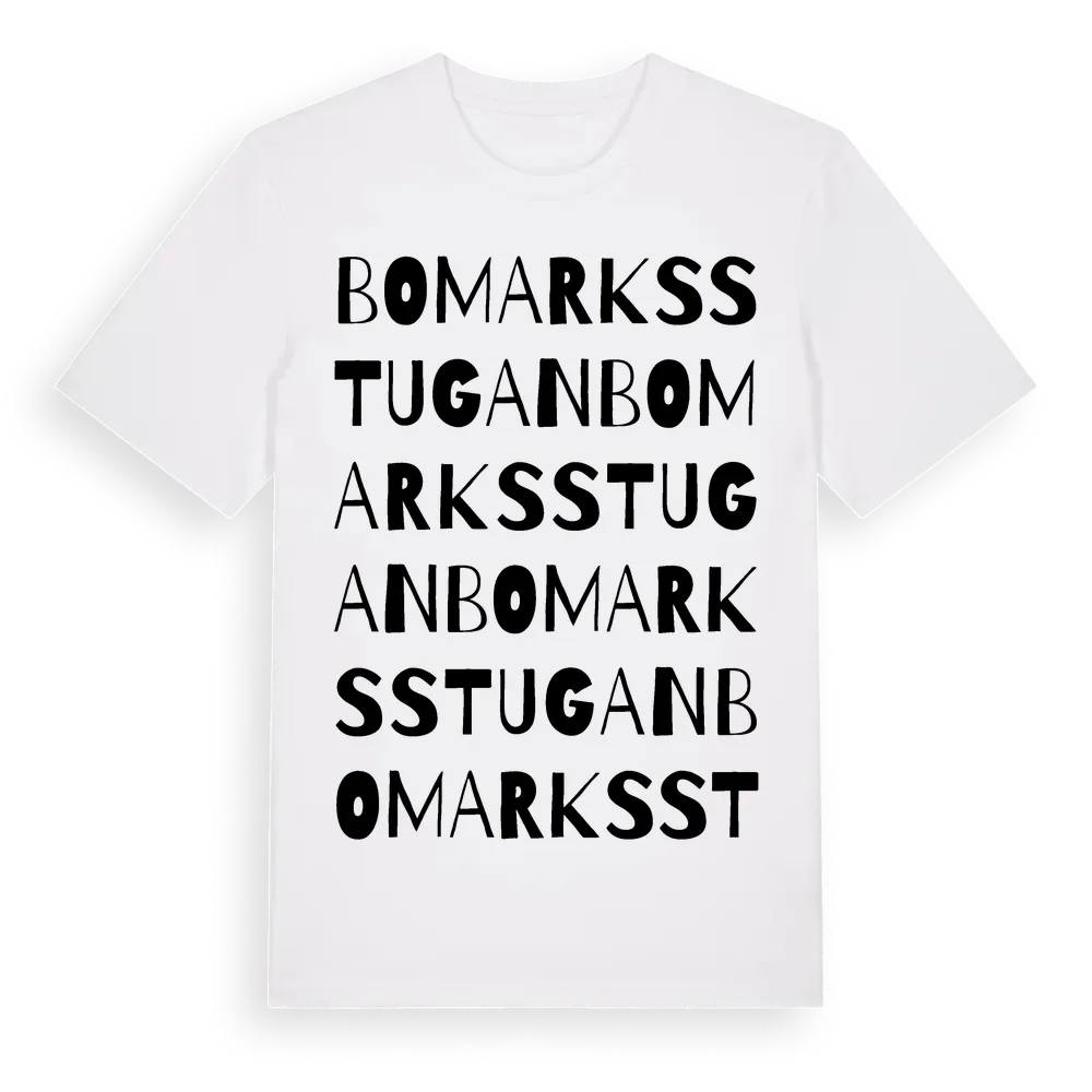 Bomarksstugan ordlek t-shirt är inspirerad av Bomarksstugan i Gävleborgs län, Sverige. Tröjan är designad för dig som har en speciell koppling till platsen – oavsett om du bor här, har rötterna här eller bara älskar Bomarksstugan.