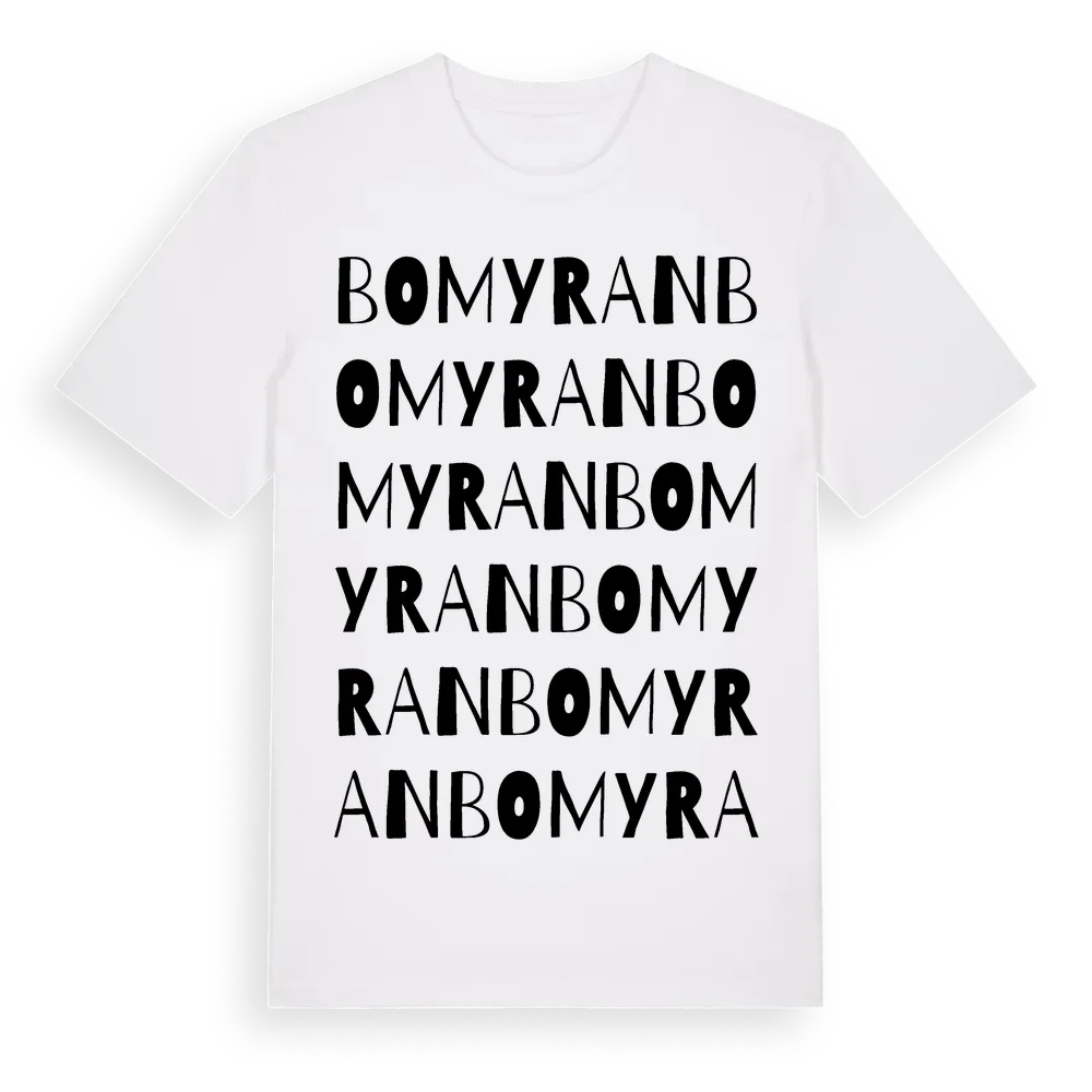 Bomyran ordlek t-shirt är inspirerad av Bomyran i Gävleborgs län, Sverige. Tröjan är designad för dig som har en speciell koppling till platsen – oavsett om du bor här, har rötterna här eller bara älskar Bomyran.
