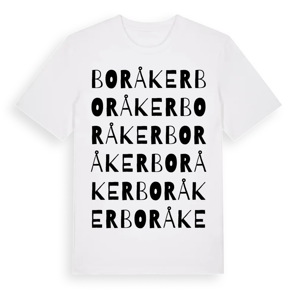 Boråker ordlek t-shirt är inspirerad av Boråker i Gävleborgs län, Sverige. Tröjan är designad för dig som har en speciell koppling till platsen – oavsett om du bor här, har rötterna här eller bara älskar Boråker.