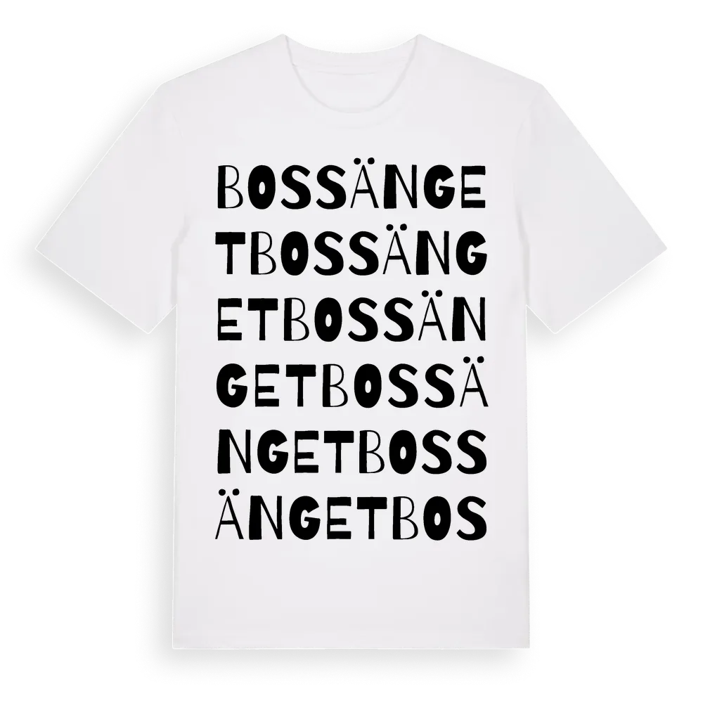 Bossänget ordlek t-shirt är inspirerad av Bossänget i Gävleborgs län, Sverige. Tröjan är designad för dig som har en speciell koppling till platsen – oavsett om du bor här, har rötterna här eller bara älskar Bossänget.