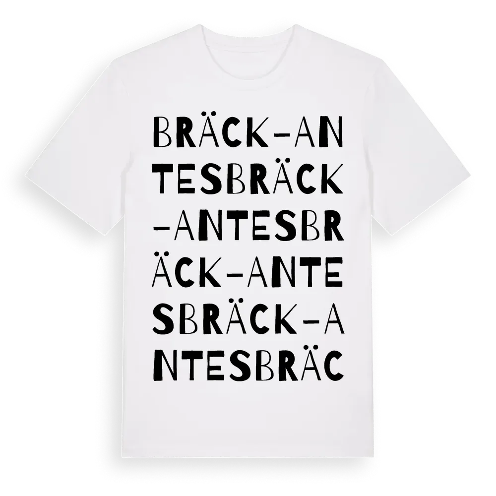 Bräck-Antes ordlek t-shirt är inspirerad av Bräck-Antes i Gävleborgs län, Sverige. Tröjan är designad för dig som har en speciell koppling till platsen – oavsett om du bor här, har rötterna här eller bara älskar Bräck-Antes.