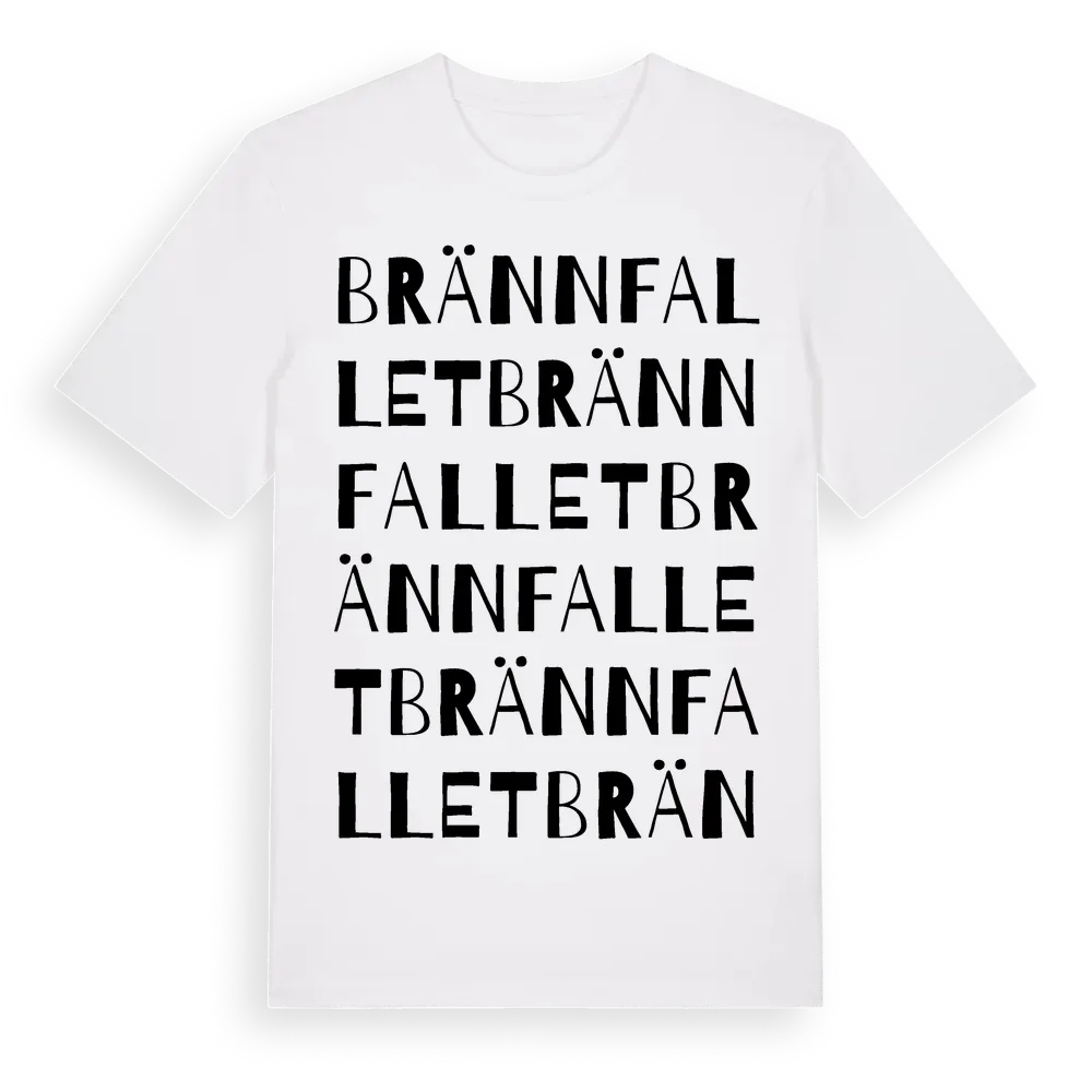 Brännfallet ordlek t-shirt är inspirerad av Brännfallet i Gävleborgs län, Sverige. Tröjan är designad för dig som har en speciell koppling till platsen – oavsett om du bor här, har rötterna här eller bara älskar Brännfallet.