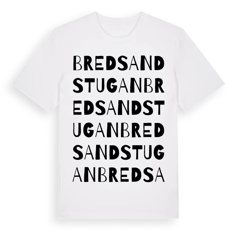 Bredsandstugan ordlek t-shirt är inspirerad av Bredsandstugan i Gävleborgs län, Sverige. Tröjan är designad för dig som har en speciell koppling till platsen – oavsett om du bor här, har rötterna här eller bara älskar Bredsandstugan.