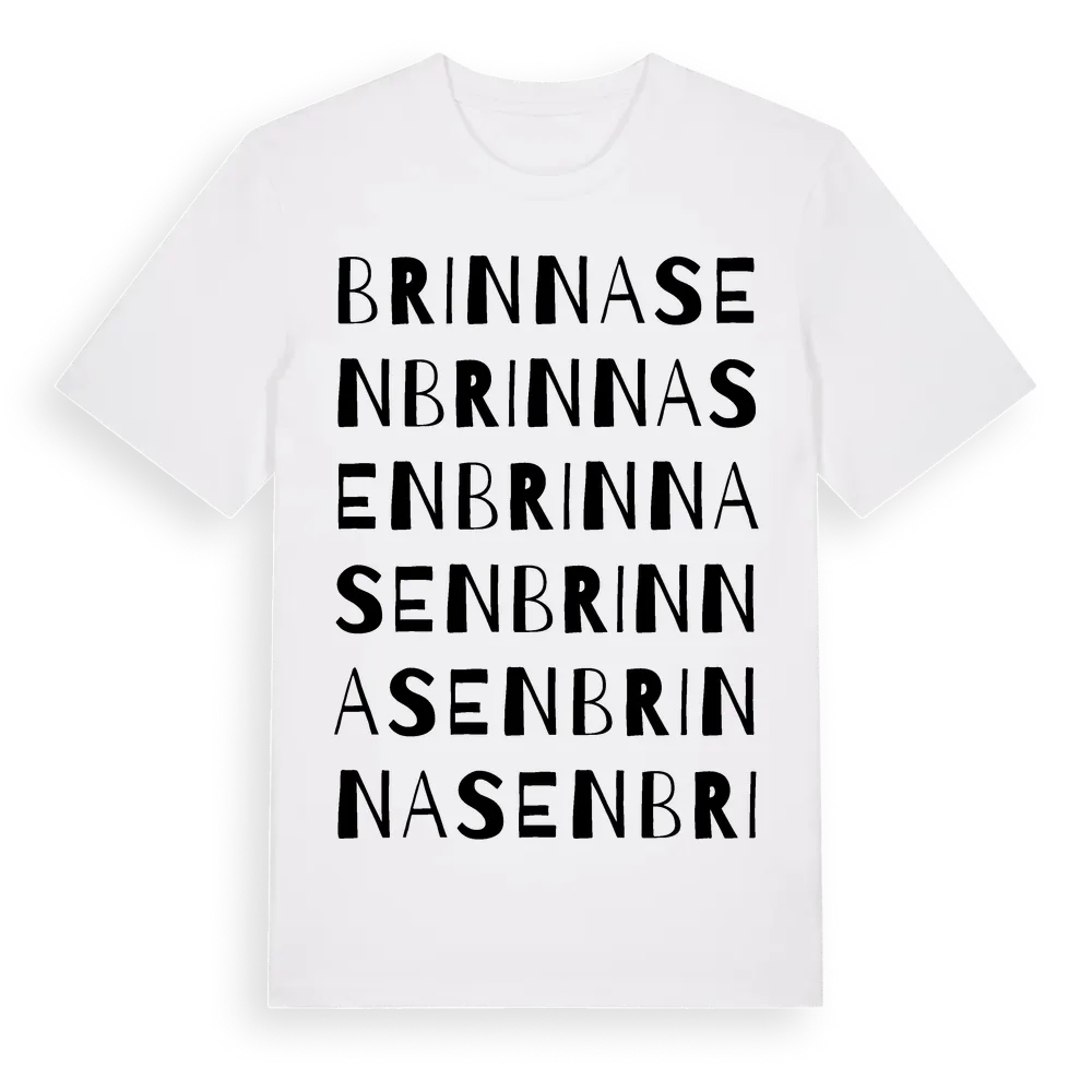 Brinnasen ordlek t-shirt är inspirerad av byn Brinnasen i Gävleborgs län, Sverige. Tröjan är designad för dig som har en speciell koppling till platsen – oavsett om du bor här, har rötterna här eller bara älskar Brinnasen.