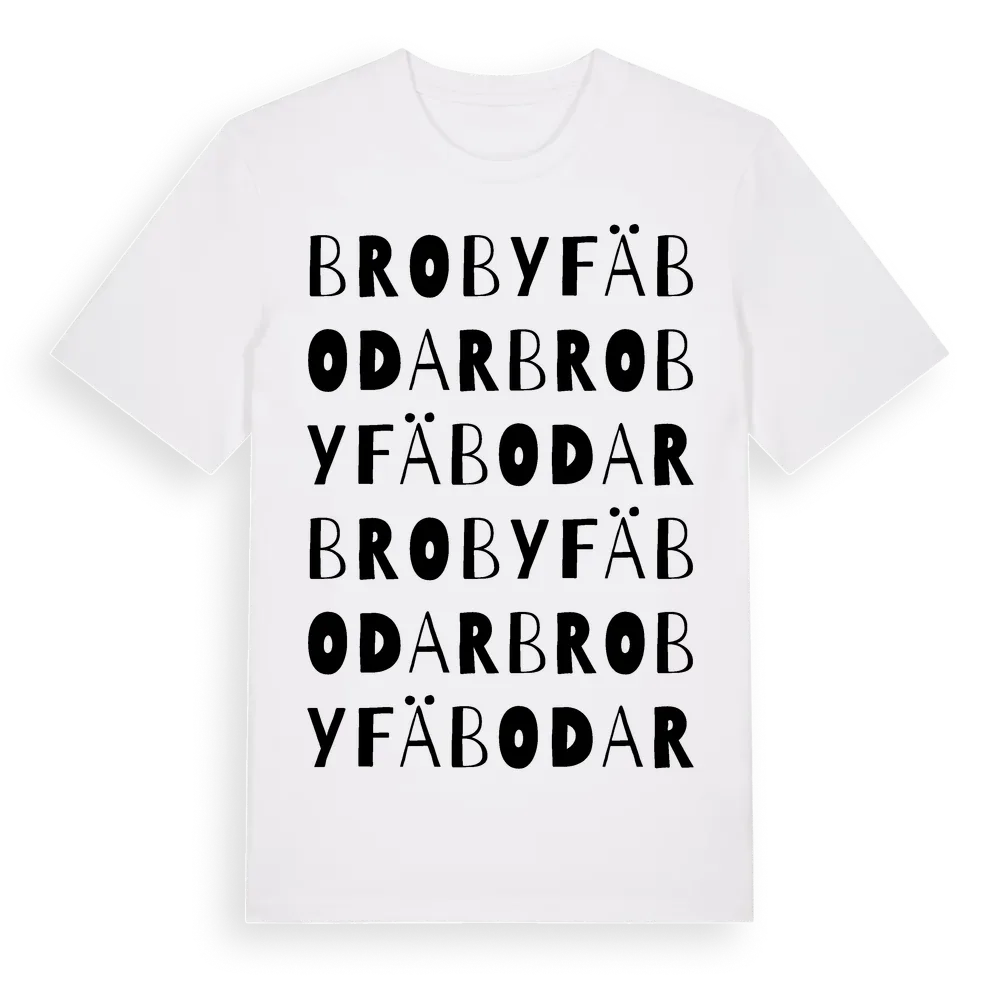 Broby Fäbodar ordlek t-shirt är inspirerad av byn Broby Fäbodar i Gävleborgs län, Sverige. Tröjan är designad för dig som har en speciell koppling till platsen – oavsett om du bor här, har rötterna här eller bara älskar Broby Fäbodar.