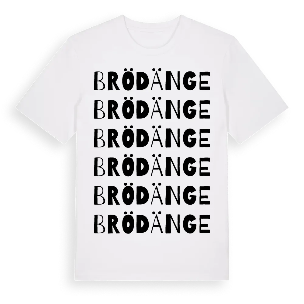 Brödänge ordlek t-shirt är inspirerad av Brödänge i Gävleborgs län, Sverige. Tröjan är designad för dig som har en speciell koppling till platsen – oavsett om du bor här, har rötterna här eller bara älskar Brödänge.