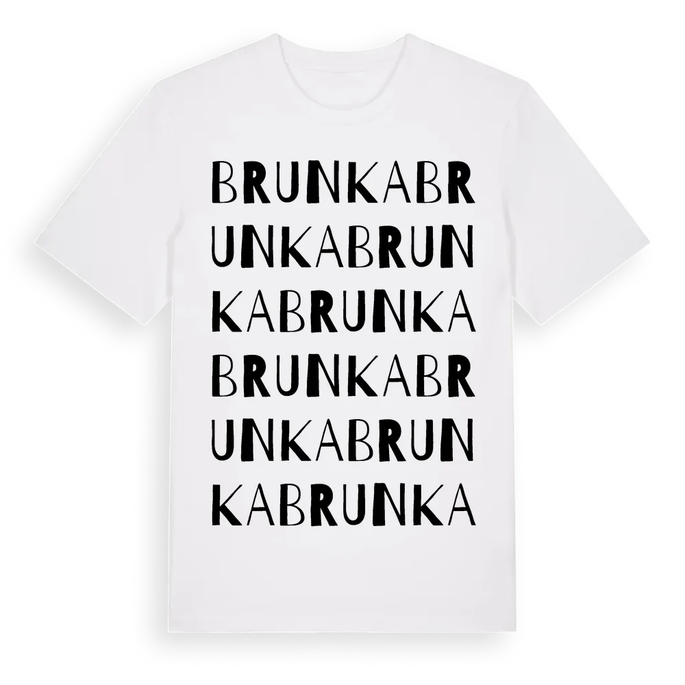 Brunka ordlek t-shirt är inspirerad av Brunka i Gävleborgs län, Sverige. Tröjan är designad för dig som har en speciell koppling till platsen – oavsett om du bor här, har rötterna här eller bara älskar Brunka.