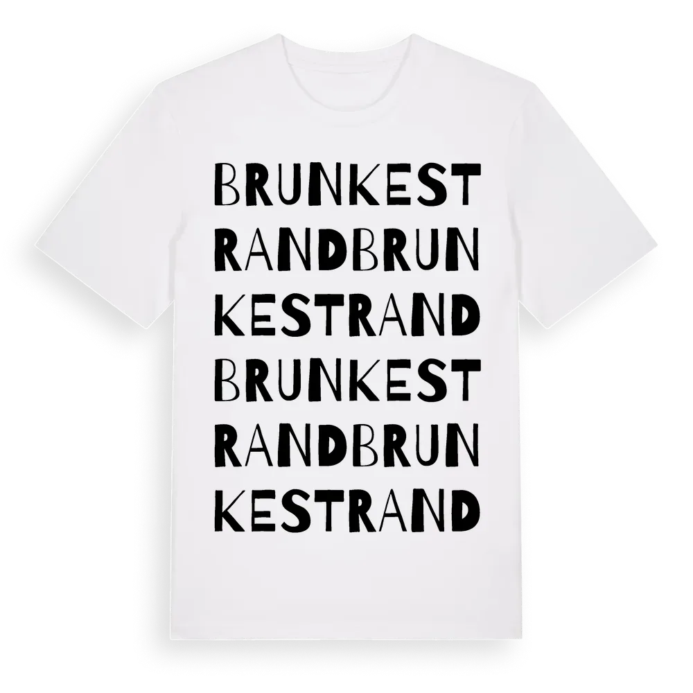 Brunkestrand ordlek t-shirt är inspirerad av Brunkestrand i Gävleborgs län, Sverige. Tröjan är designad för dig som har en speciell koppling till platsen – oavsett om du bor här, har rötterna här eller bara älskar Brunkestrand.