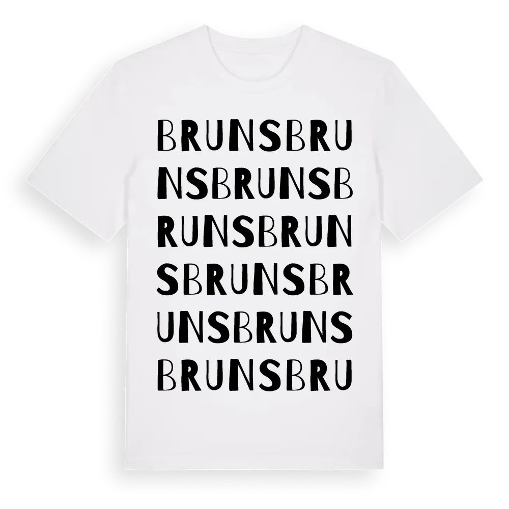 Bruns ordlek t-shirt är inspirerad av Bruns i Gävleborgs län, Sverige. Tröjan är designad för dig som har en speciell koppling till platsen – oavsett om du bor här, har rötterna här eller bara älskar Bruns.