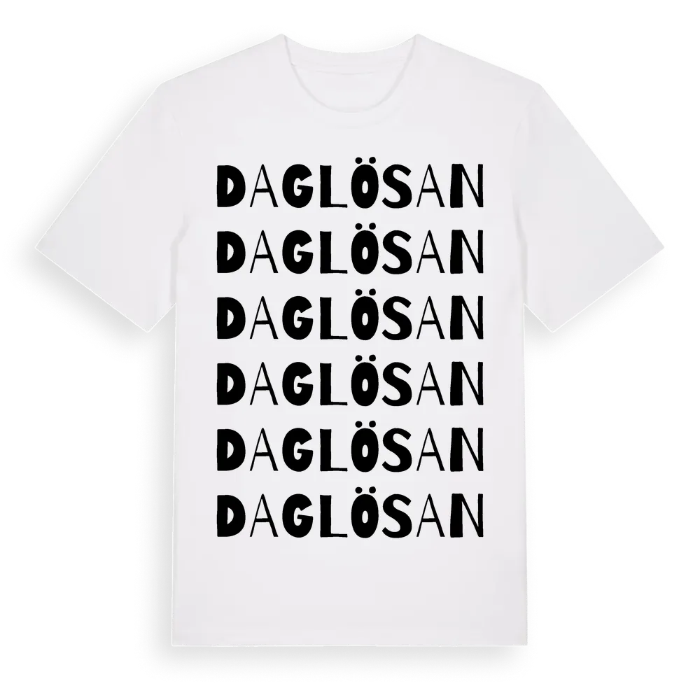 En ordlek byggd på Daglösans namn. Subtilt och klurig – ett motiv som bara de som verkligen känner platsen fullt ut förstår. Premium bomull, unisex – från Daglösan i Gävleborgs län.