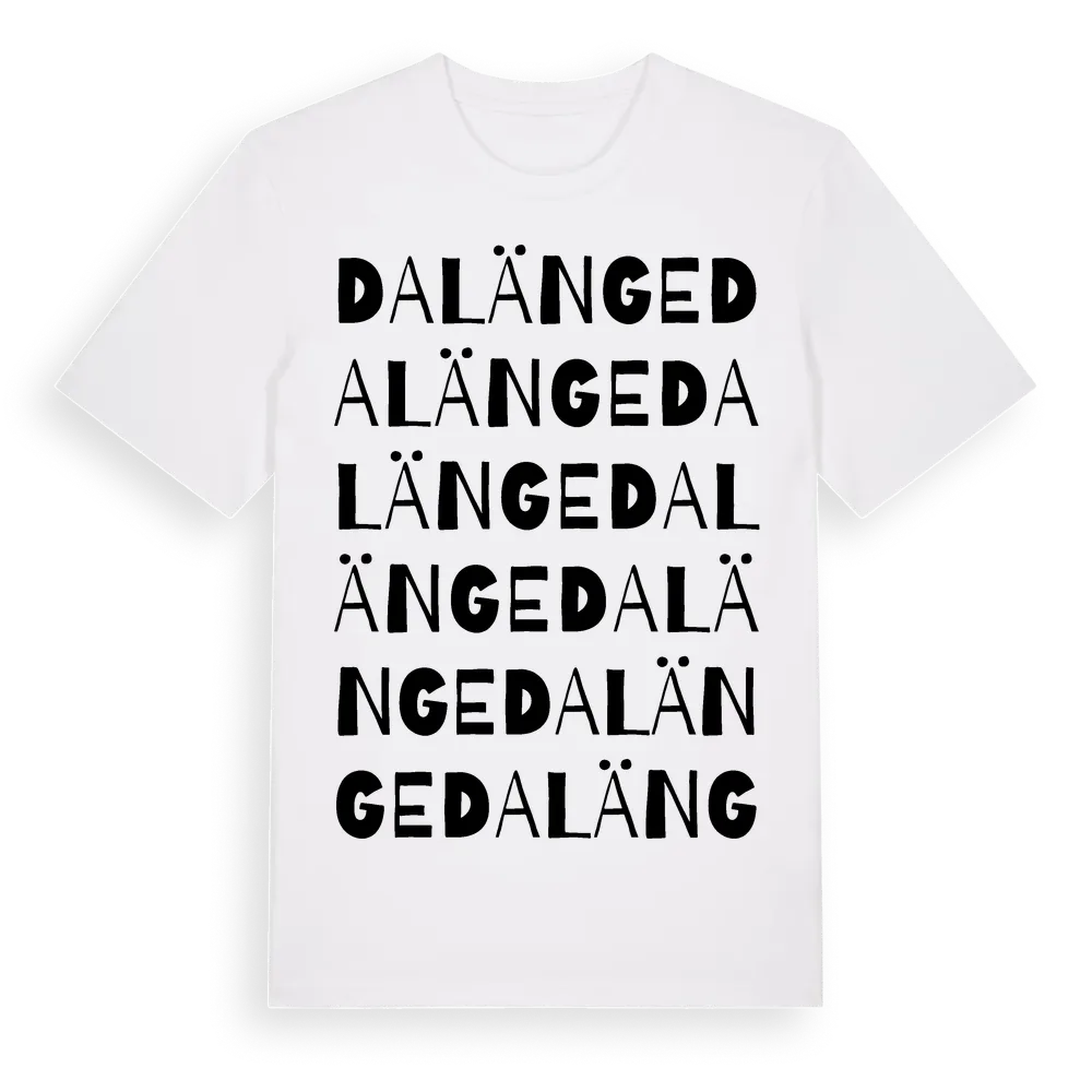 Dalänge ordlek t-shirt är inspirerad av Dalänge i Gävleborgs län, Sverige. Tröjan är designad för dig som har en speciell koppling till platsen – oavsett om du bor här, har rötterna här eller bara älskar Dalänge.