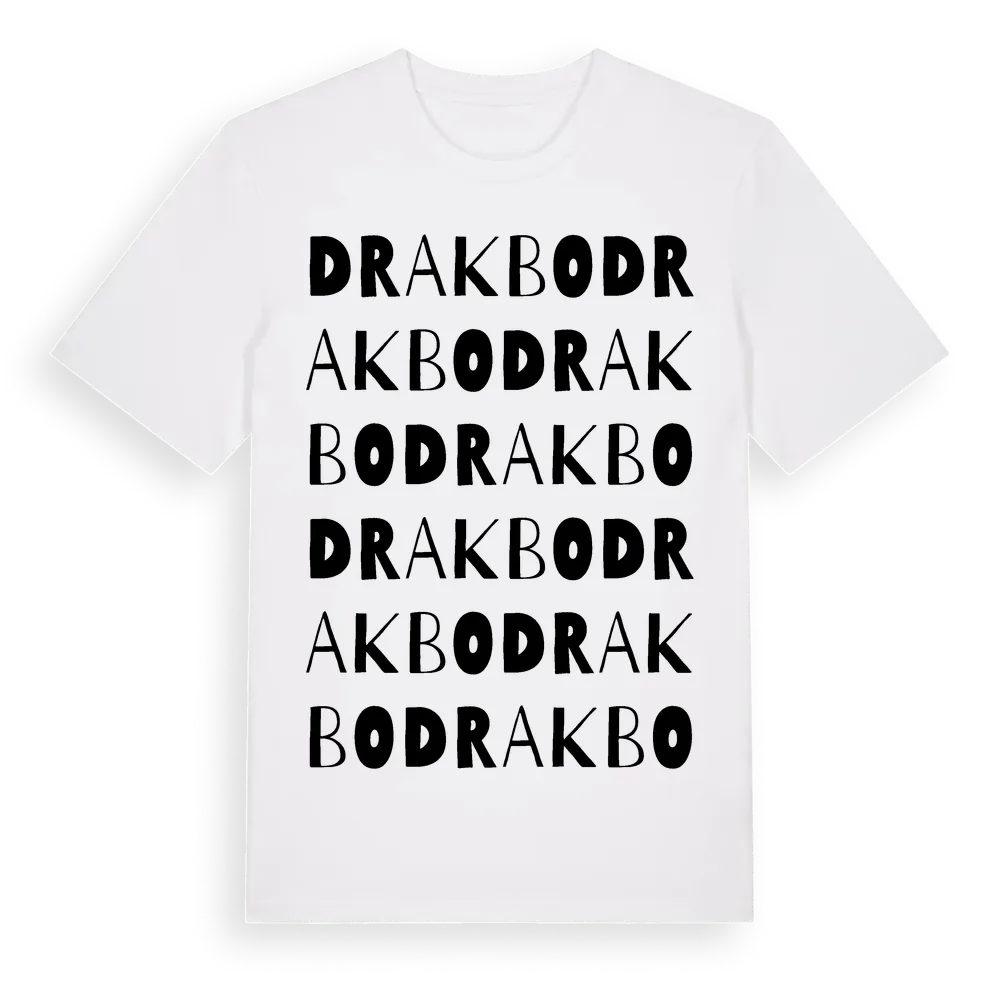 Drakbo ordlek t-shirt är inspirerad av Drakbo i Gävleborgs län, Sverige. Tröjan är designad för dig som har en speciell koppling till platsen – oavsett om du bor här, har rötterna här eller bara älskar Drakbo.