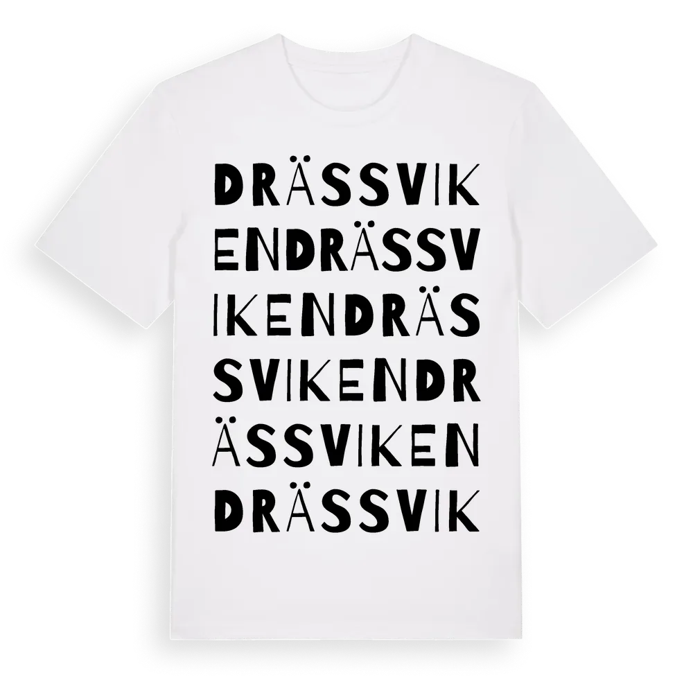 Drässviken ordlek t-shirt är inspirerad av byn Drässviken i Gävleborgs län, Sverige. Tröjan är designad för dig som har en speciell koppling till platsen – oavsett om du bor här, har rötterna här eller bara älskar Drässviken.