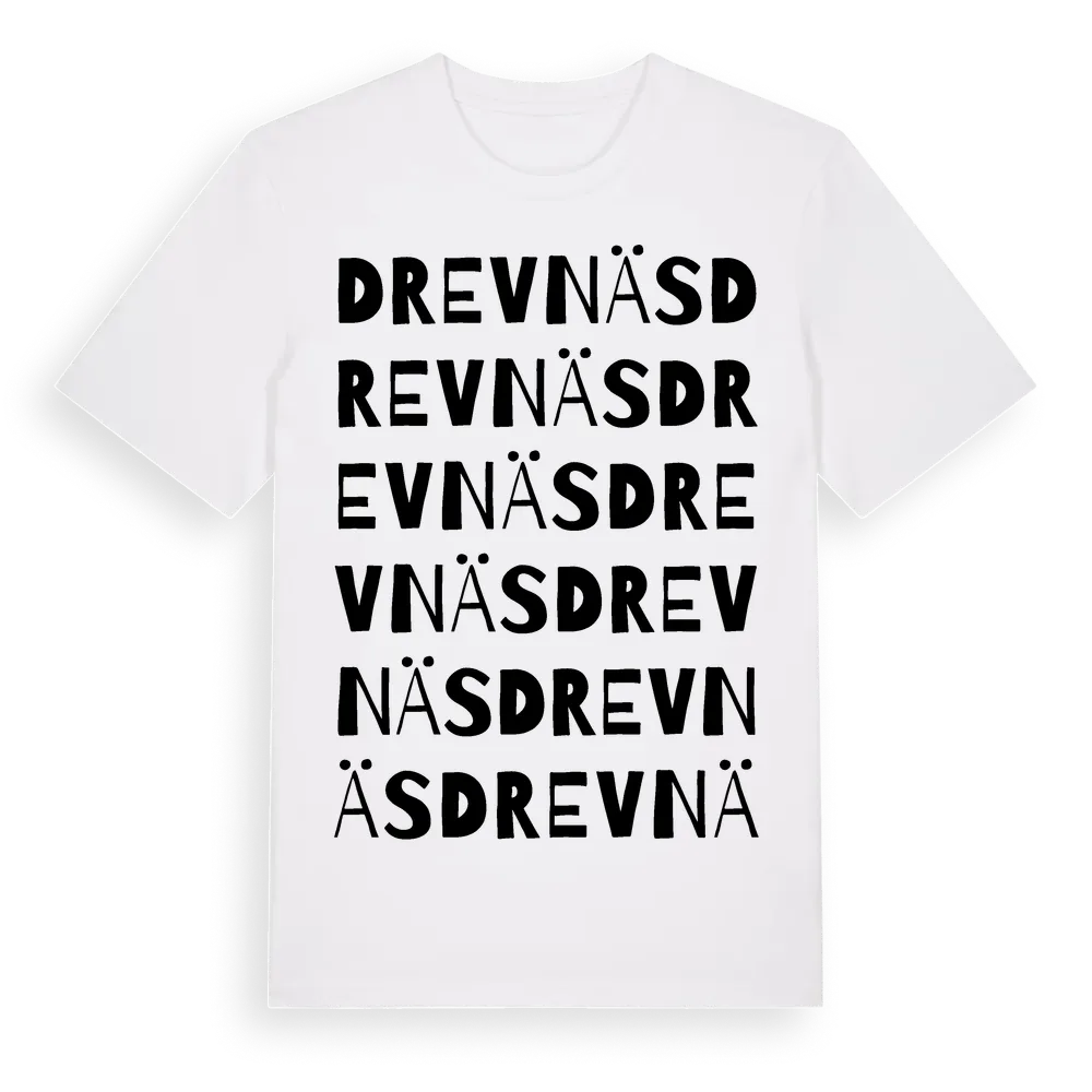 En ordlek byggd på Drevnäss namn. Subtilt och klurig – ett motiv som bara de som verkligen känner platsen fullt ut förstår. Premium bomull, unisex – från byn Drevnäs i Gävleborgs län.