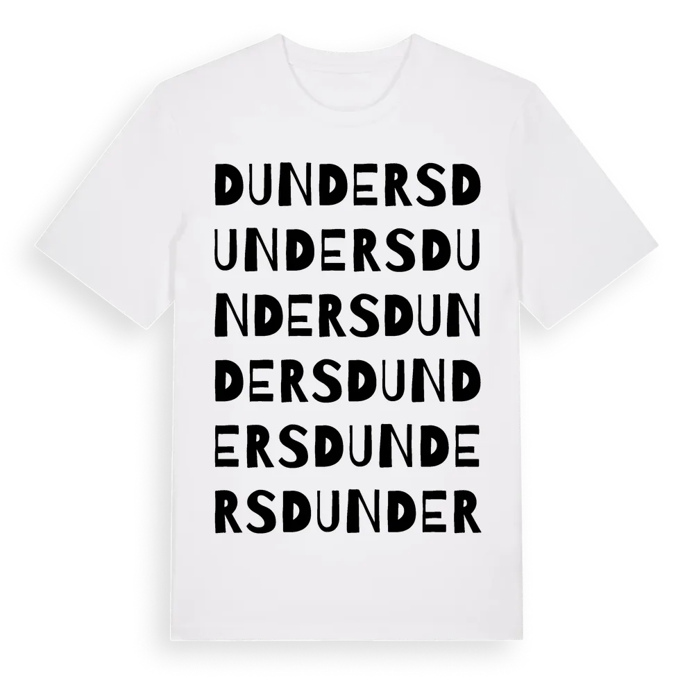 Dunders ordlek t-shirt är inspirerad av Dunders i Gävleborgs län, Sverige. Tröjan är designad för dig som har en speciell koppling till platsen – oavsett om du bor här, har rötterna här eller bara älskar Dunders.