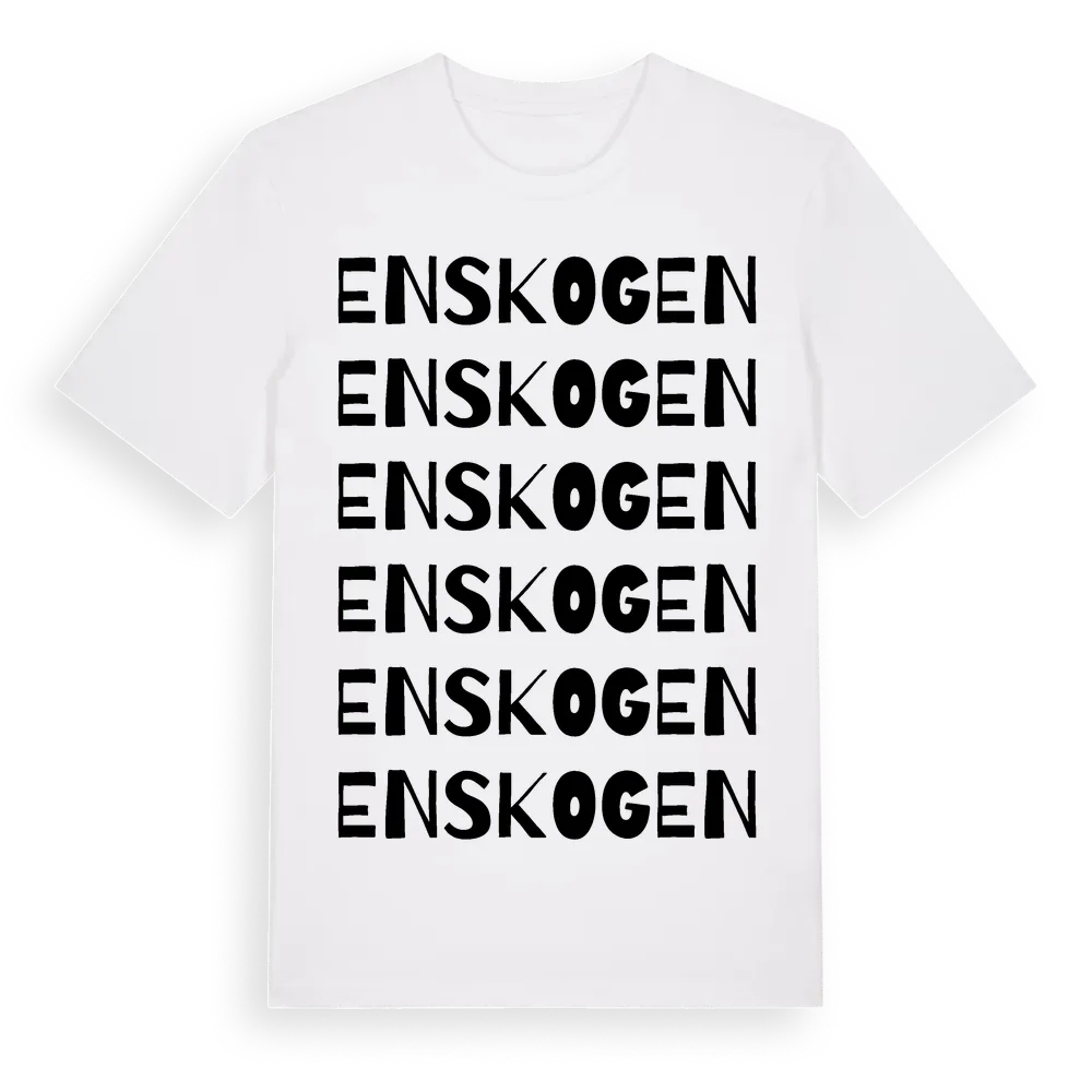 Enskogen ordlek t-shirt är inspirerad av byn Enskogen i Gävleborgs län, Sverige. Tröjan är designad för dig som har en speciell koppling till platsen – oavsett om du bor här, har rötterna här eller bara älskar Enskogen.