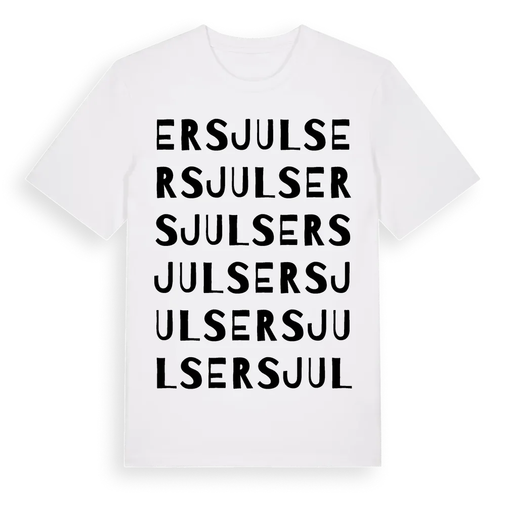 Ersjuls ordlek t-shirt är inspirerad av Ersjuls i Gävleborgs län, Sverige. Tröjan är designad för dig som har en speciell koppling till platsen – oavsett om du bor här, har rötterna här eller bara älskar Ersjuls.