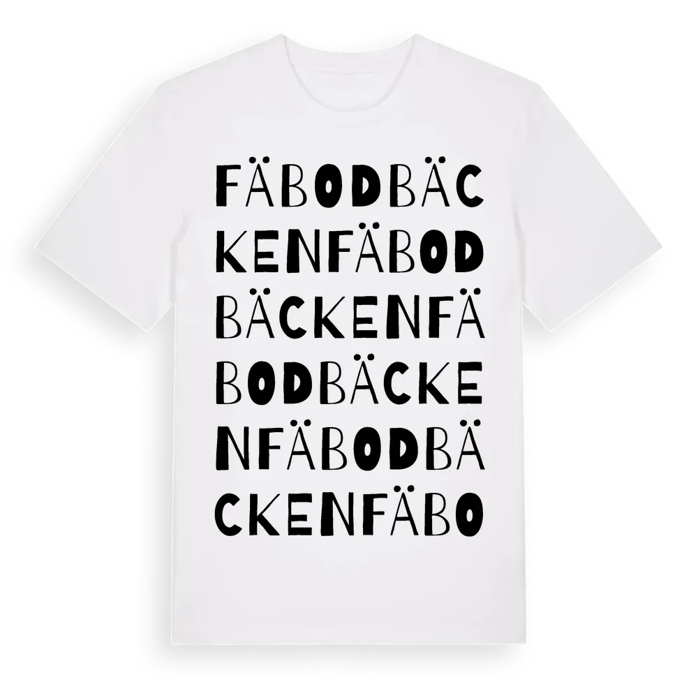 Fäbodbäcken ordlek t-shirt är inspirerad av Fäbodbäcken i Gävleborgs län, Sverige. Tröjan är designad för dig som har en speciell koppling till platsen – oavsett om du bor här, har rötterna här eller bara älskar Fäbodbäcken.