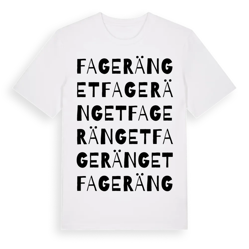 Fageränget ordlek t-shirt är inspirerad av Fageränget i Gävleborgs län, Sverige. Tröjan är designad för dig som har en speciell koppling till platsen – oavsett om du bor här, har rötterna här eller bara älskar Fageränget.
