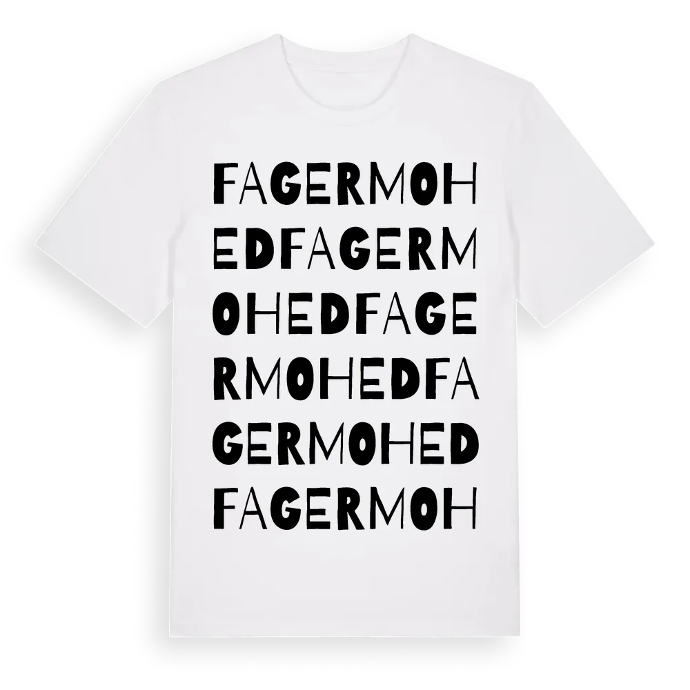 Fagermohed ordlek t-shirt är inspirerad av Fagermohed i Gävleborgs län, Sverige. Tröjan är designad för dig som har en speciell koppling till platsen – oavsett om du bor här, har rötterna här eller bara älskar Fagermohed.