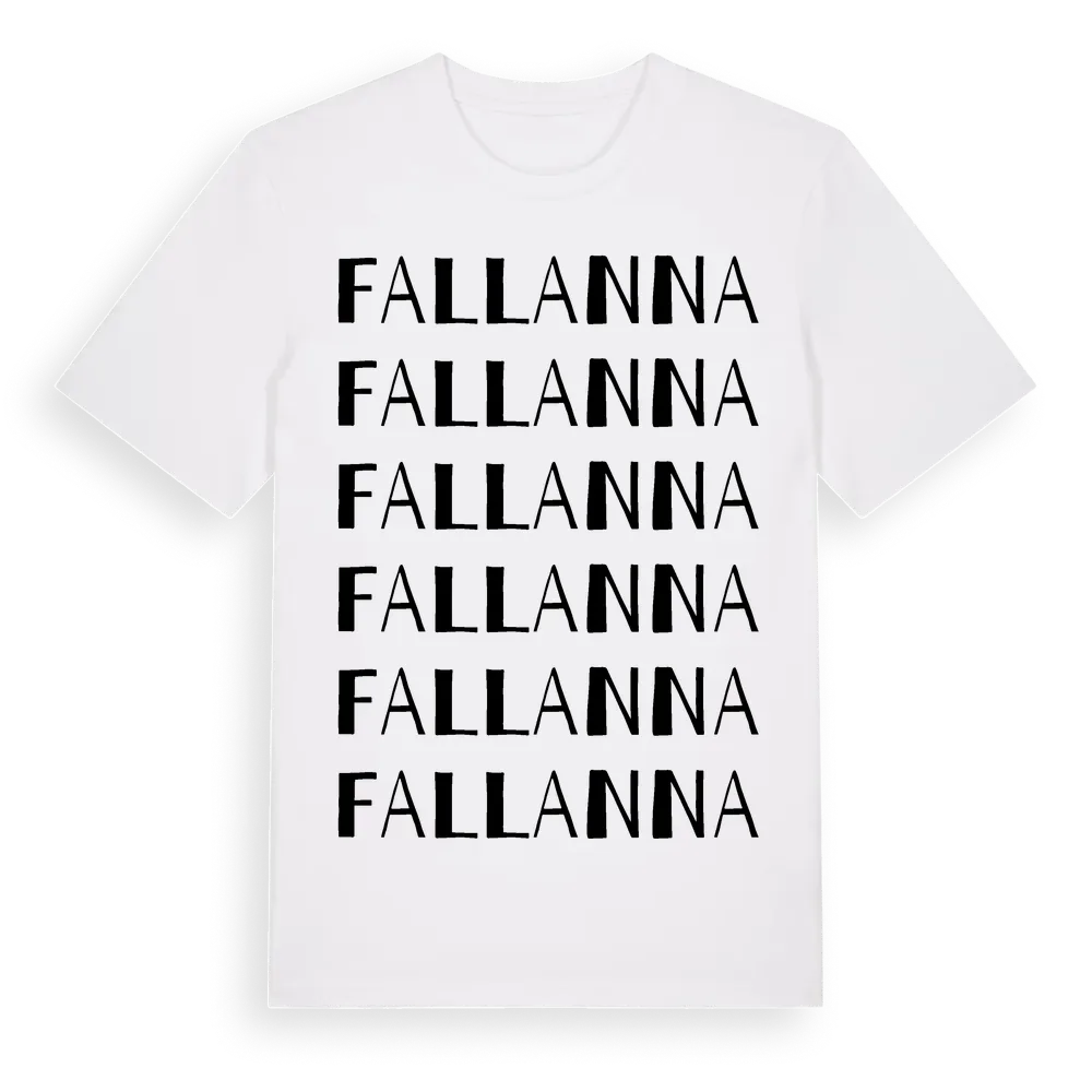 En ordlek byggd på Fallannas namn. Subtilt och klurig – ett motiv som bara de som verkligen känner platsen fullt ut förstår. Premium bomull, unisex – från byn Fallanna i Gävleborgs län.
