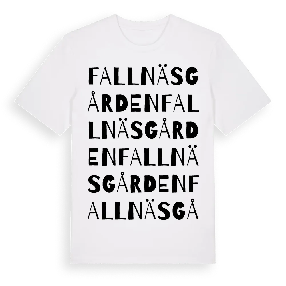 Fallnäsgården ordlek t-shirt är inspirerad av Fallnäsgården i Gävleborgs län, Sverige. Tröjan är designad för dig som har en speciell koppling till platsen – oavsett om du bor här, har rötterna här eller bara älskar Fallnäsgården.