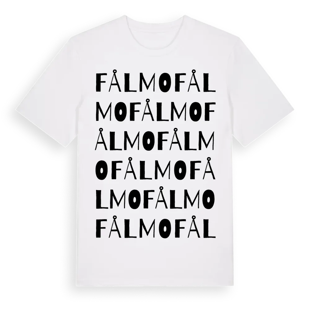 Fålmo ordlek t-shirt är inspirerad av Fålmo i Gävleborgs län, Sverige. Tröjan är designad för dig som har en speciell koppling till platsen – oavsett om du bor här, har rötterna här eller bara älskar Fålmo.