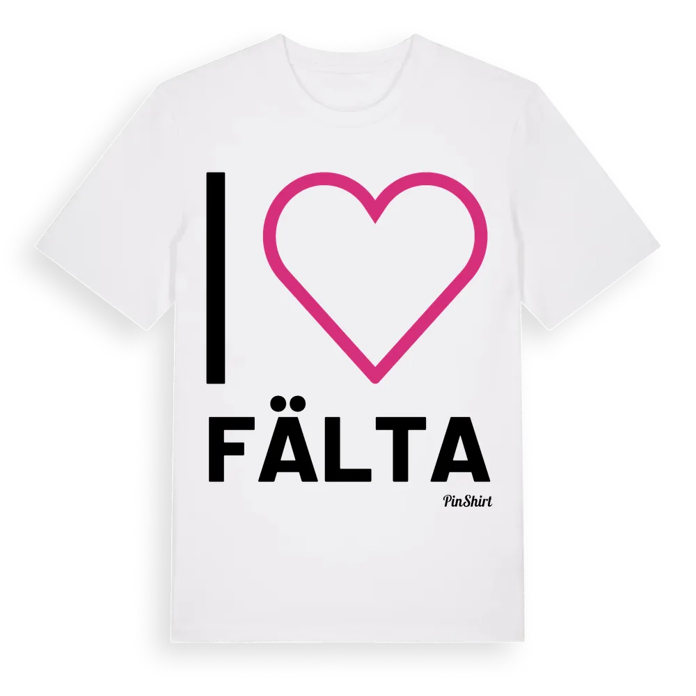 Det klassiska "I ❤ Fälta"-motivet i stort format som täcker hela bröstet. För dig som vill visa kärleken till Fälta på riktigt. Premium bomull, unisex – från Fälta i Gävleborgs län.