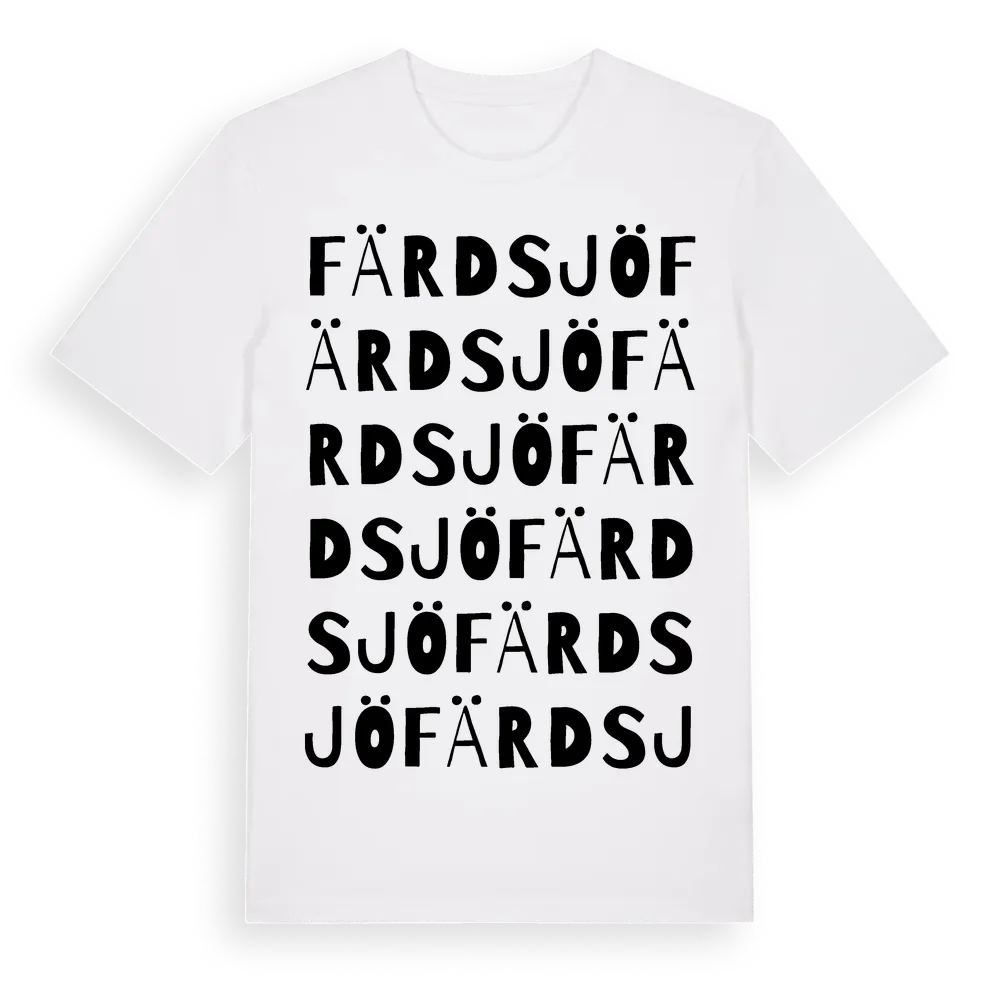 Färdsjö ordlek t-shirt är inspirerad av byn Färdsjö i Gävleborgs län, Sverige. Tröjan är designad för dig som har en speciell koppling till platsen – oavsett om du bor här, har rötterna här eller bara älskar Färdsjö.