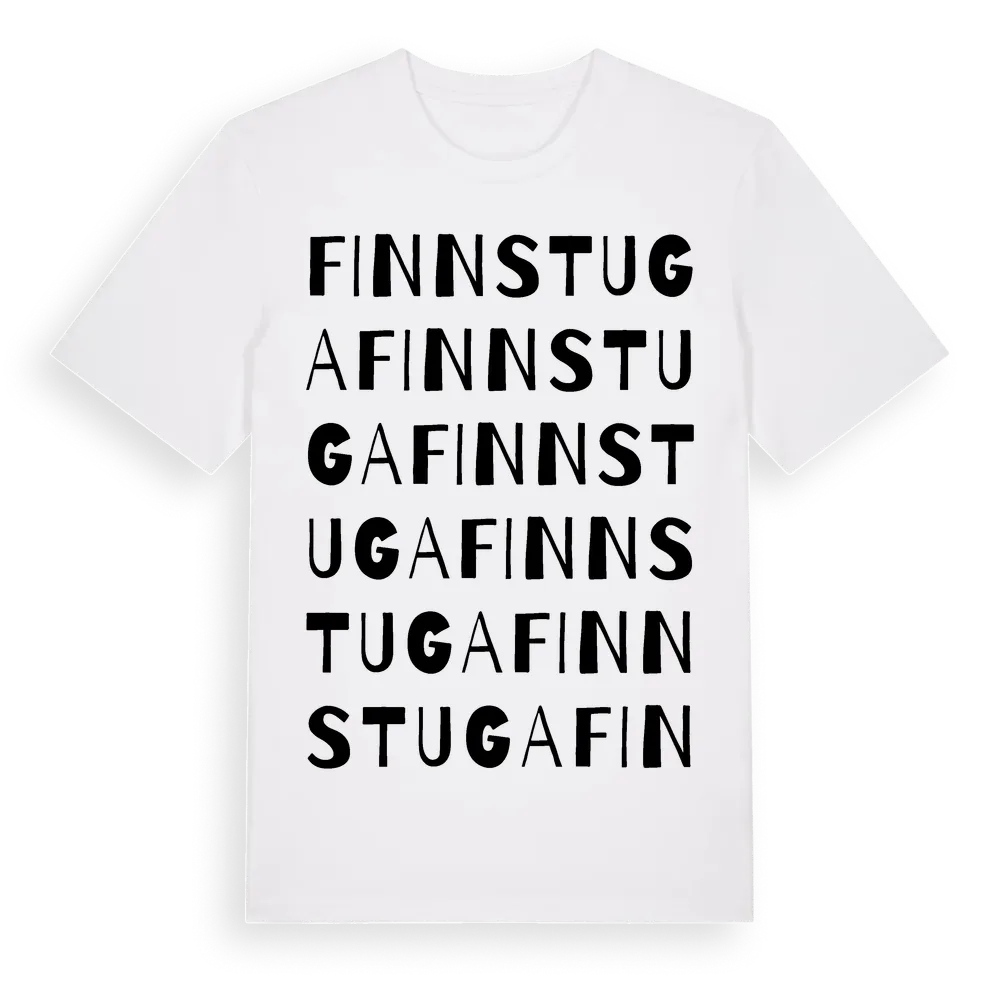 Finnstuga ordlek t-shirt är inspirerad av byn Finnstuga i Gävleborgs län, Sverige. Tröjan är designad för dig som har en speciell koppling till platsen – oavsett om du bor här, har rötterna här eller bara älskar Finnstuga.