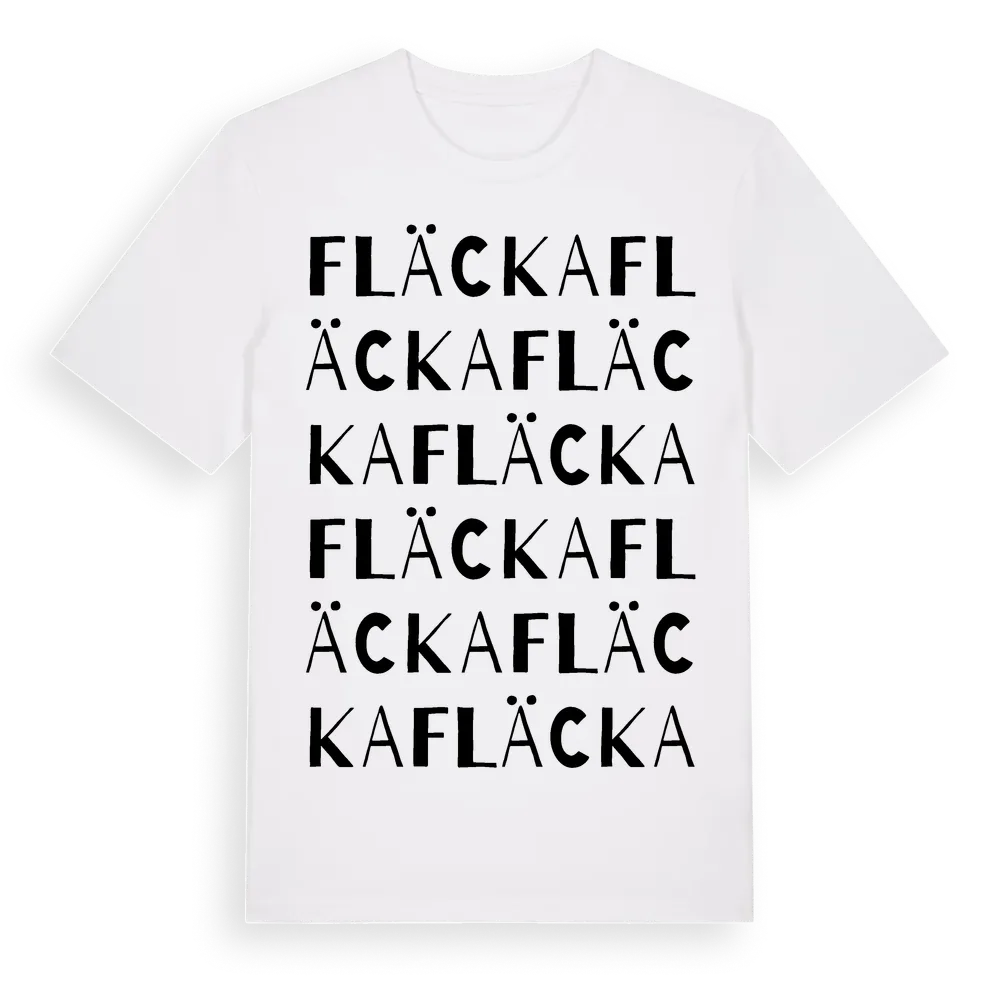 Fläcka ordlek t-shirt är inspirerad av byn Fläcka i Gävleborgs län, Sverige. Tröjan är designad för dig som har en speciell koppling till platsen – oavsett om du bor här, har rötterna här eller bara älskar Fläcka.