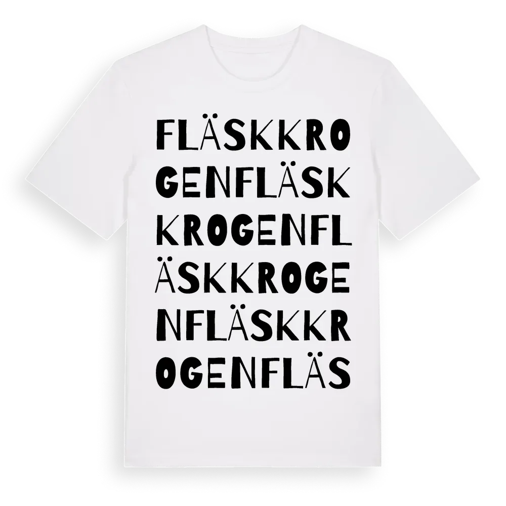 Fläskkrogen ordlek t-shirt är inspirerad av Fläskkrogen i Gävleborgs län, Sverige. Tröjan är designad för dig som har en speciell koppling till platsen – oavsett om du bor här, har rötterna här eller bara älskar Fläskkrogen.