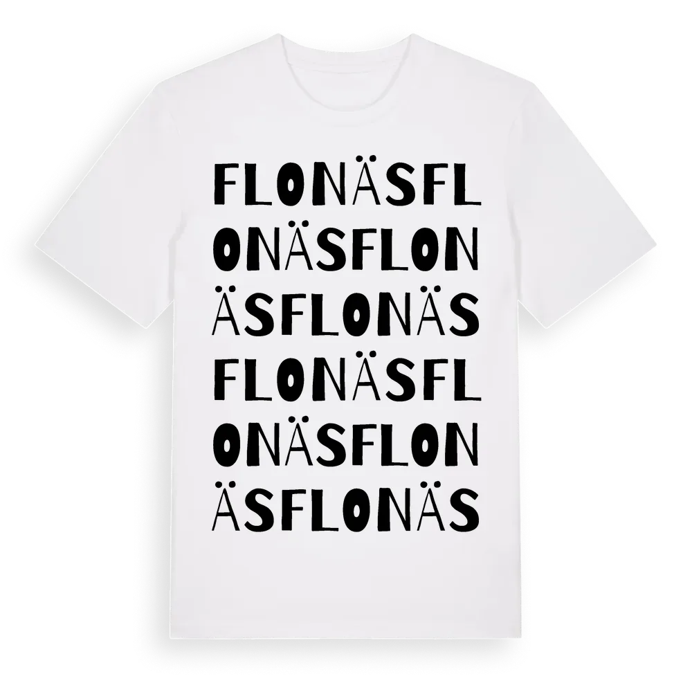 En ordlek byggd på Flonäss namn. Subtilt och klurig – ett motiv som bara de som verkligen känner platsen fullt ut förstår. Premium bomull, unisex – från Flonäs i Gävleborgs län.