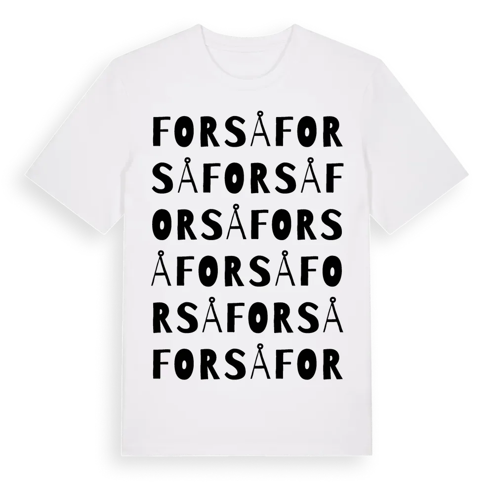 Forså ordlek t-shirt är inspirerad av byn Forså i Gävleborgs län, Sverige. Tröjan är designad för dig som har en speciell koppling till platsen – oavsett om du bor här, har rötterna här eller bara älskar Forså.