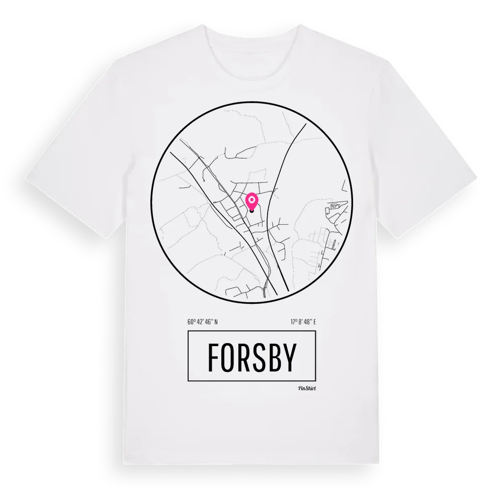 Forsby t-shirt är inspirerad av byn Forsby i Gävleborgs län, Sverige. Tröjan är designad för dig som har en speciell koppling till platsen – oavsett om du bor här, har rötterna här eller bara älskar Forsby.