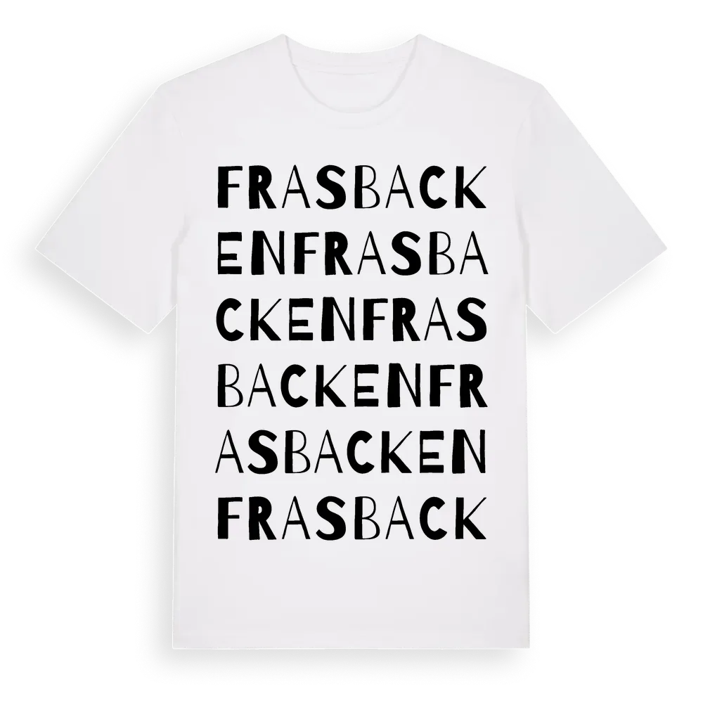 Frasbacken ordlek t-shirt är inspirerad av Frasbacken i Gävleborgs län, Sverige. Tröjan är designad för dig som har en speciell koppling till platsen – oavsett om du bor här, har rötterna här eller bara älskar Frasbacken.