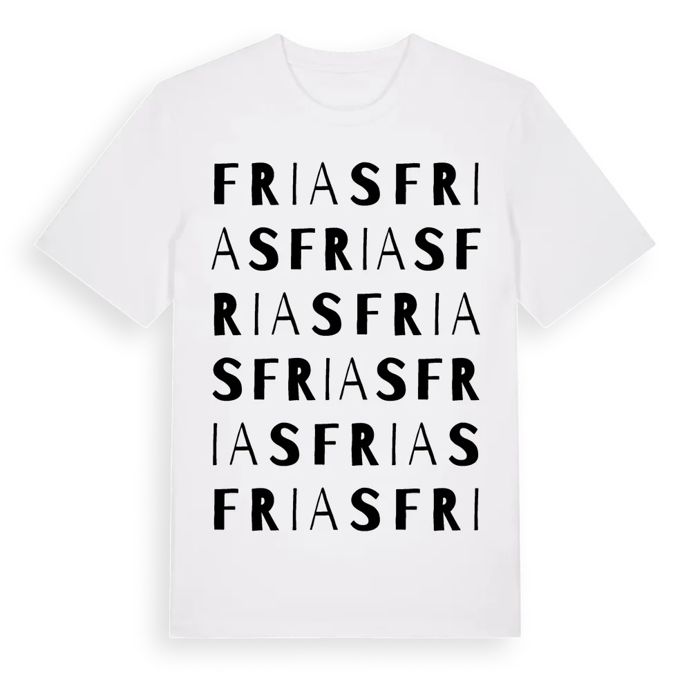 Frias ordlek t-shirt är inspirerad av Frias i Gävleborgs län, Sverige. Tröjan är designad för dig som har en speciell koppling till platsen – oavsett om du bor här, har rötterna här eller bara älskar Frias.